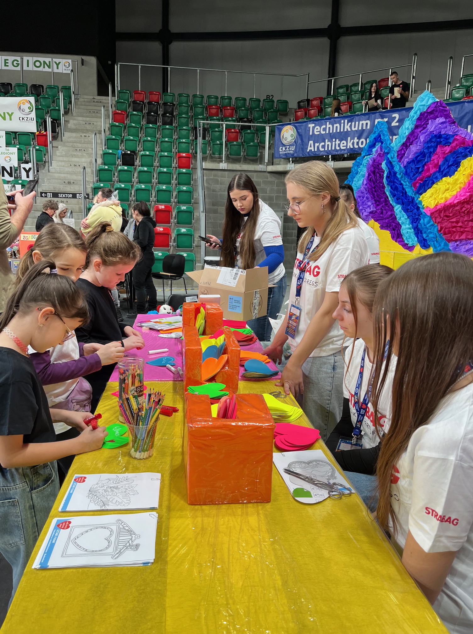 W tym roku nasze kreatywne stoisko gościło w Zagłębiowskim Parku Sportowym w Sosnowcu (ArcelorMittal Park). Wspólnie z Technikum Architektoniczno-Budowlanym w Sosnowcu zaprosiliśmy uczestników do zabawy w tworzenie autorskich serduszek z pomocą kredkowych czarów Fiorello i klejowej magii AMOS.