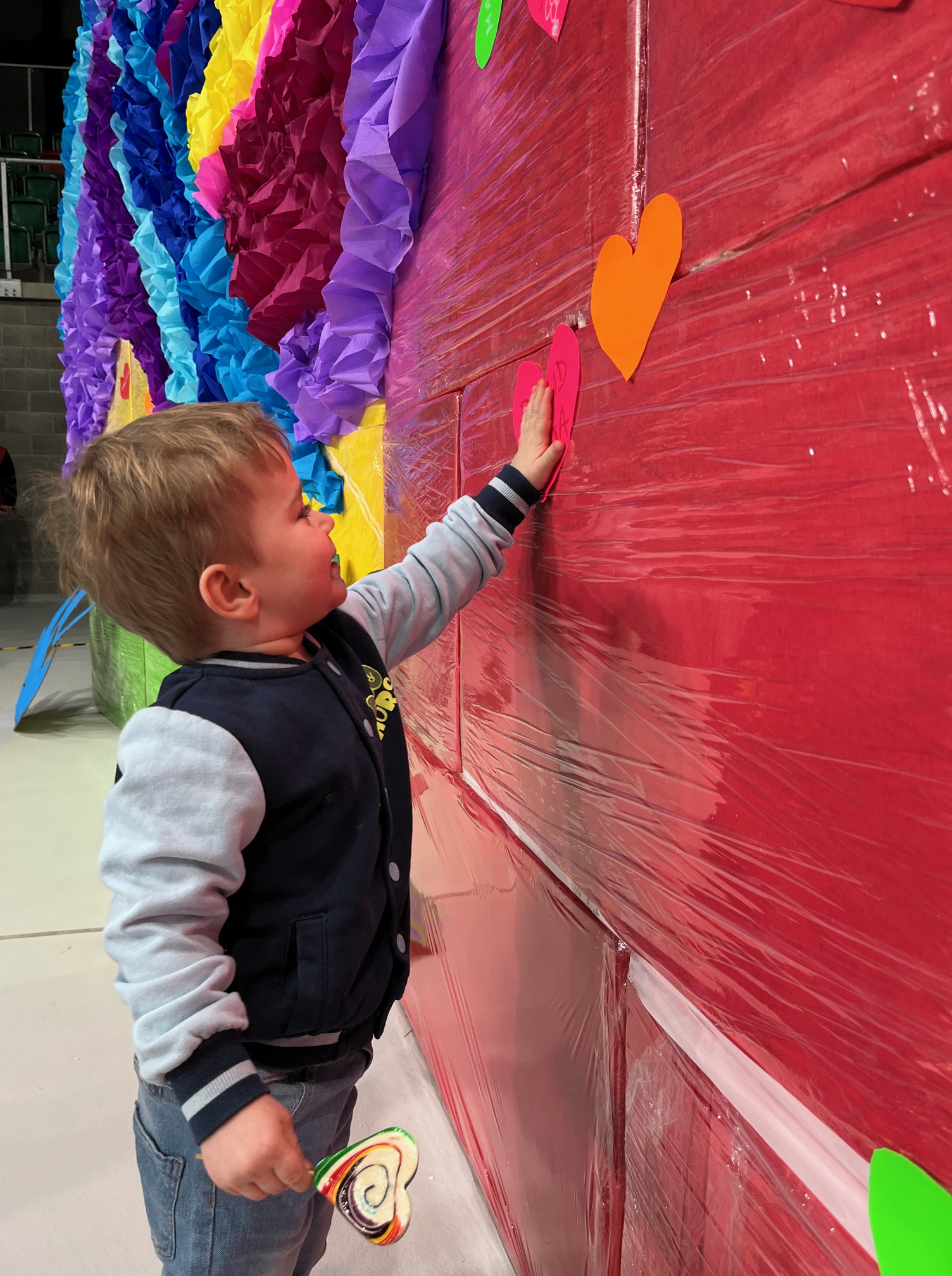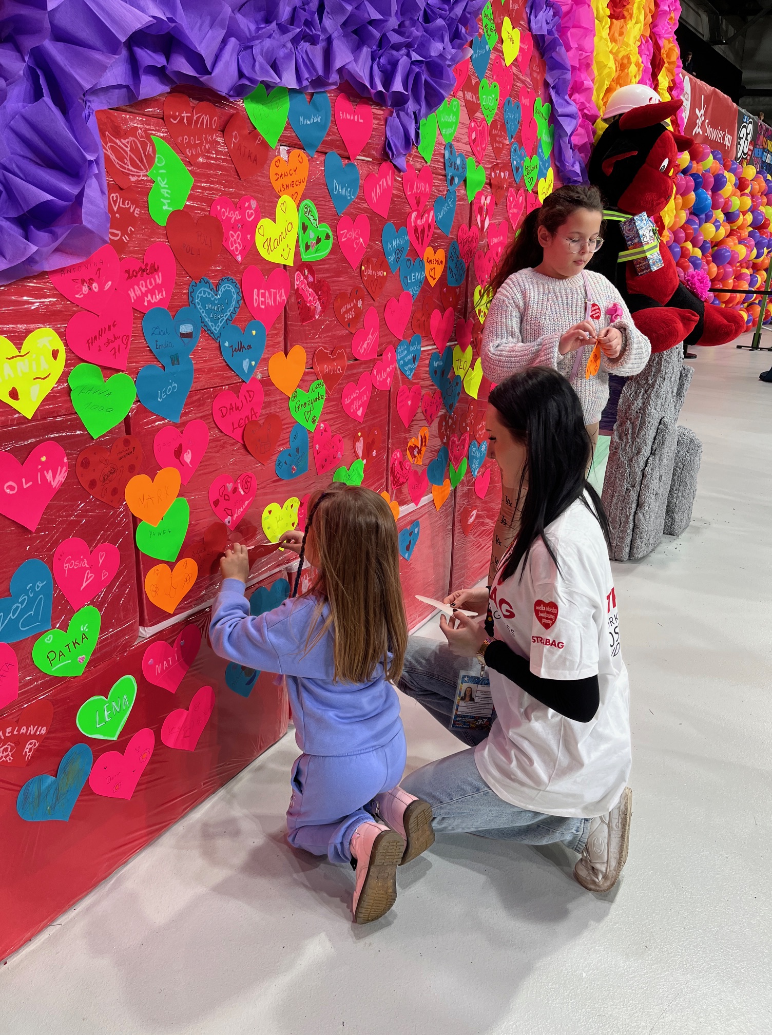 Kolorowe dzieła trafiły na specjalną „ścianę miłości”, która stała się symbolicznym miejscem pełnym wsparcia i serdeczności.